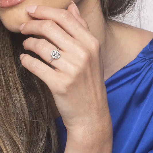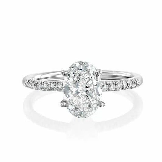 טבעת יהלומים,זהב לבן K14,משובצת סוליטר אובל 0.70 קראט ויהלומים מסביב,דגם RDD2160OVAL