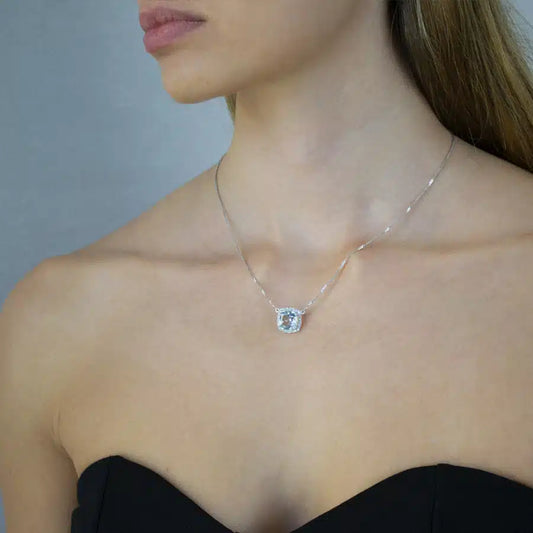 שרשרת אבן אקוומרין ויהלומים,זהב 14k,משובץ 0.30 קראט יהלומים,דגם CD3092