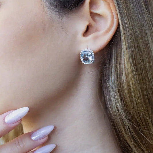 עגילי אבן חן אקוומרין ויהלומים,זהב 14 קרט,דגם POZED3092