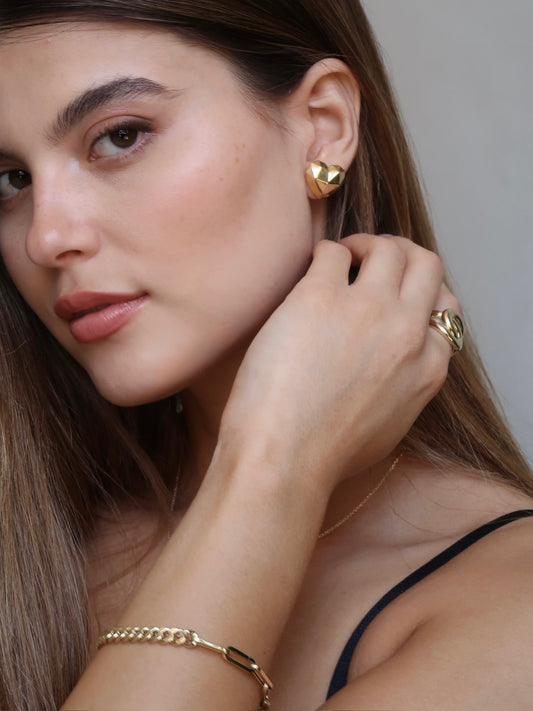 עגילי לב מזהב 14 K, דגם POZE277-281015