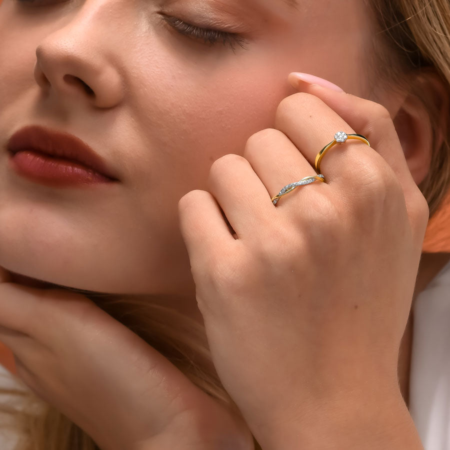 טבעת יהלומים בעיצוב קלאסי ,זהב K14, משובצת 0.07 קראט יהלומים, דגם POZRD3779