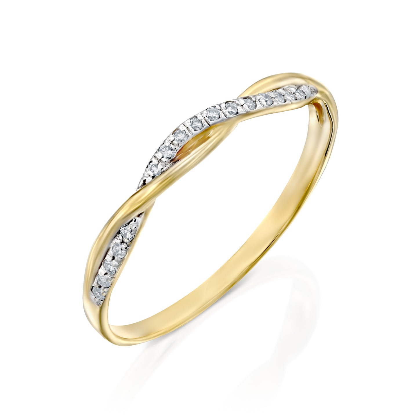 טבעת יהלומים , 14 K זהב , משובצת יהלומים במשקל כולל 0.07 קרט בצבע G נקיון SI, במשקל 1.00 גרם