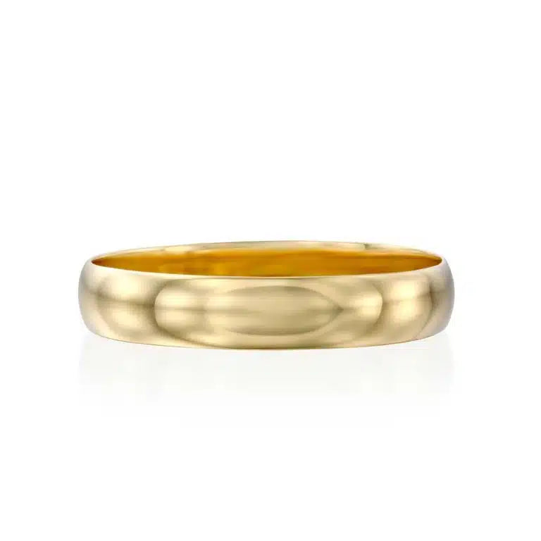 טבעת נישואין קלאסית מזהב 14k, פרופיל מעוגל שטוח, רוחב 4 מ"מ, משקל משתנה בהתאם למידת הטבעת.