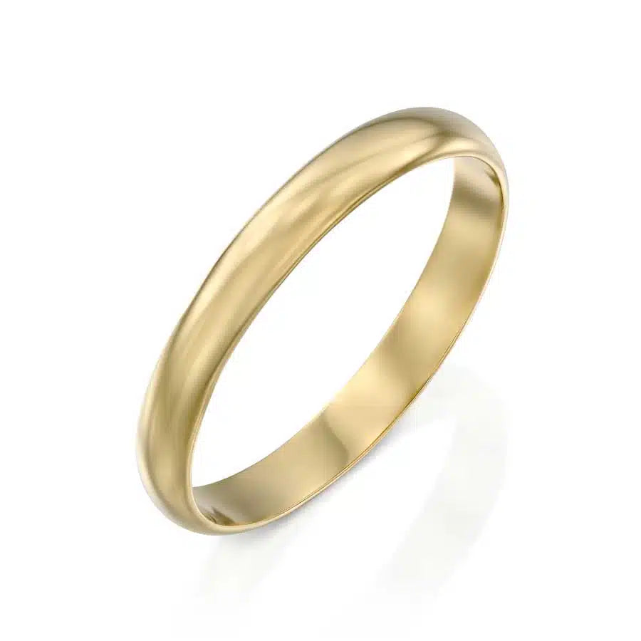 טבעת נישואין קלאסית מזהב 14k, פרופיל מעוגל, רוחב 3 מ"מ, משקל משתנה בהתאם למידת האצבע.