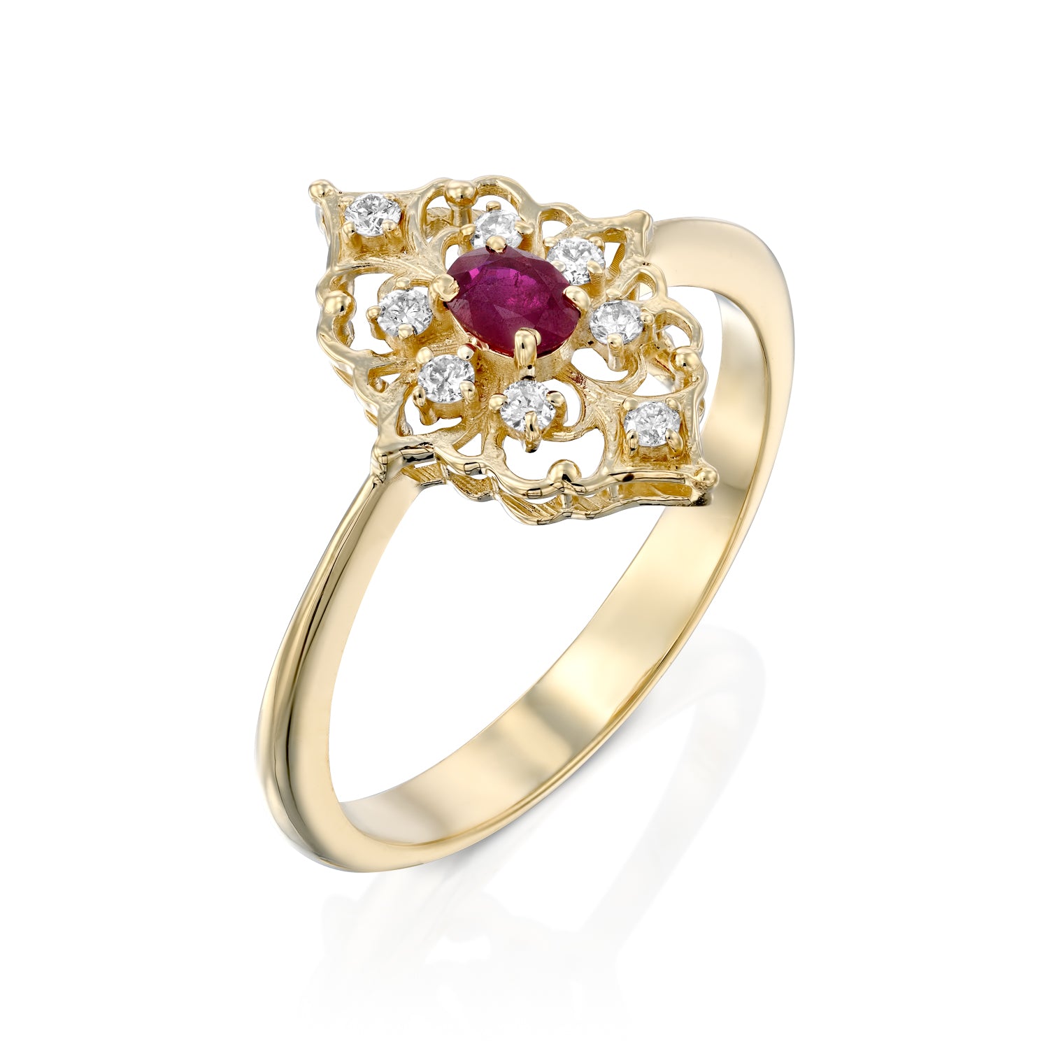 טבעת רובי ויהלומים,זהב צהוב 14k,דגם POZRD4095RU