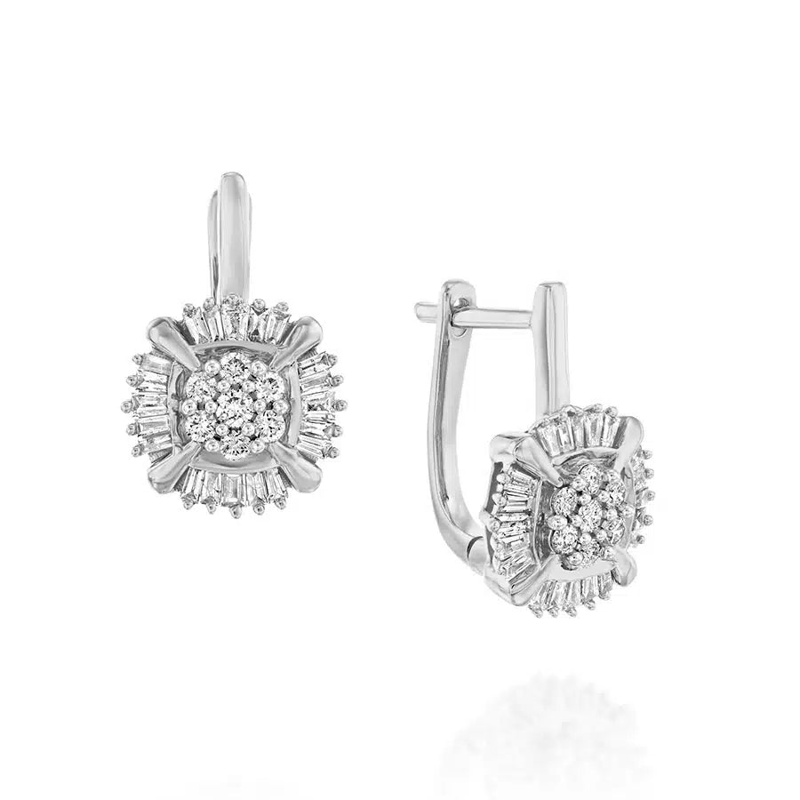 עגילי יהלומים, זהב 14K, כולל של 0.75 קראט יהלום בצבע F ובניקיון SI, במשקל 4.00 גרם