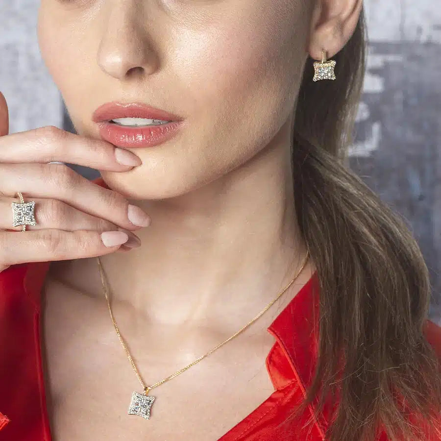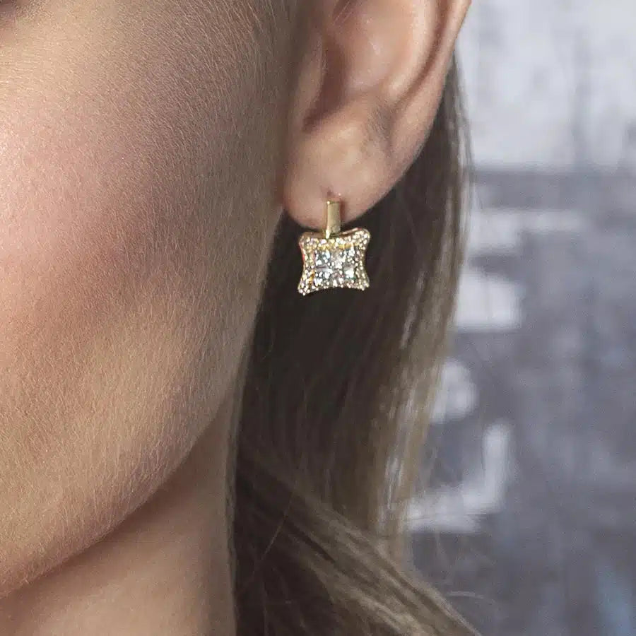 עגילי יהלומים מזהב K14,משובצים 1.00 קראט יהלומים,דגם POZEDSEF30350