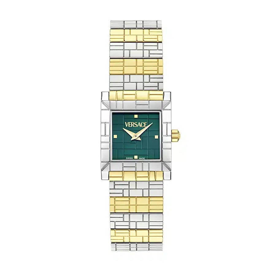 שעון VERSACE MOSAIC מתהדר באלגנטיות גיאומטרית עם המארז המרובע וצמיד בעיצוב מרובעים שלו
