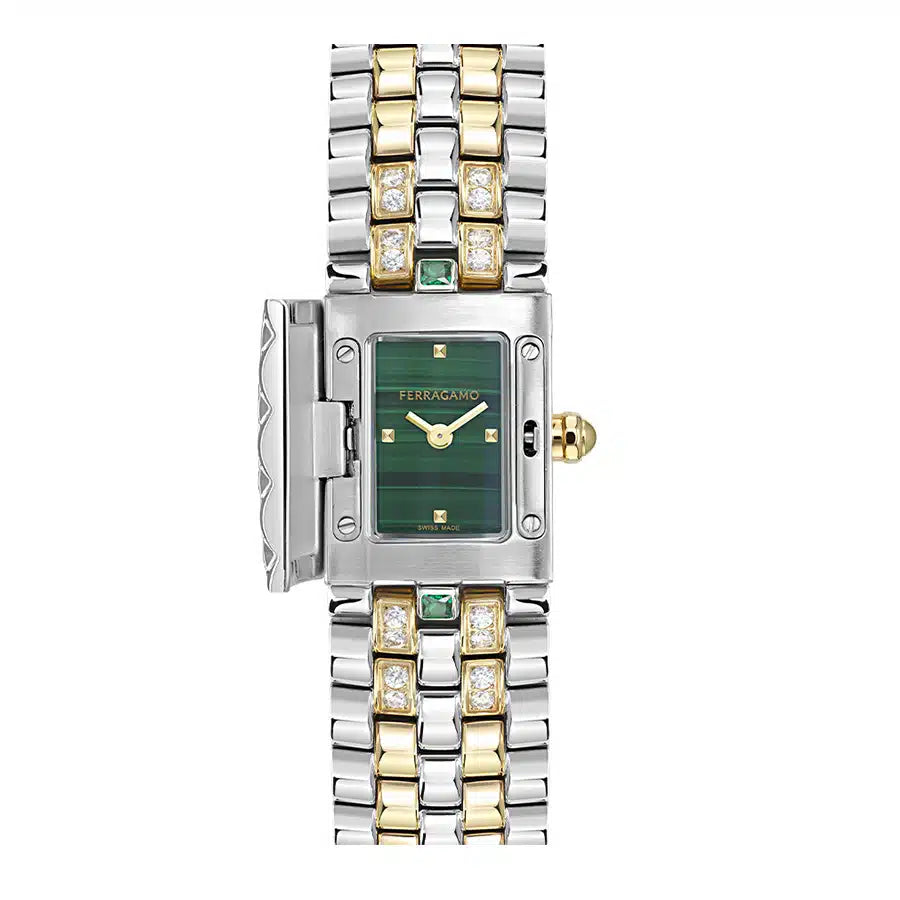 שעון Ferragamo מקולקציית Ferragamo Secret Precious עם אמרלד ויהלומים, שעון לאישה ,דגם SFSB00224