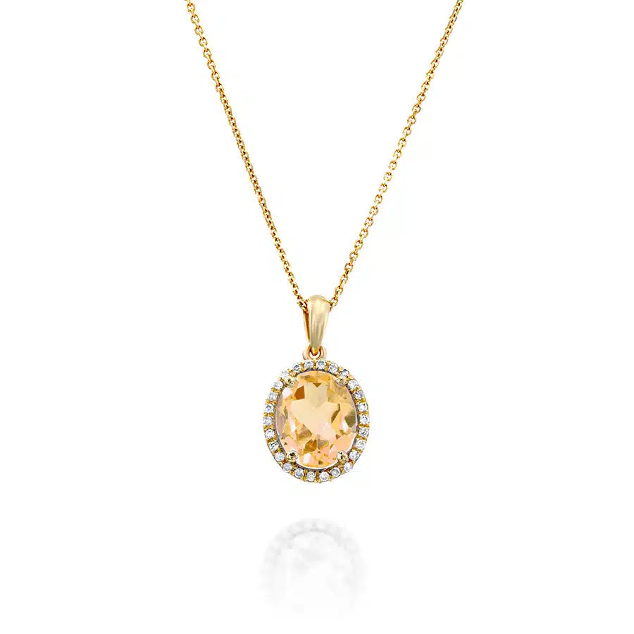 תליון אבן סיטרין ויהלומים,זהב 14k,משובץ 0.10 קראט יהלומים,דגם POZPD3565CT