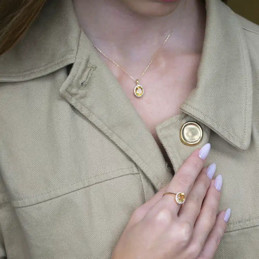 תליון אבן חן ויהלומים, זהב 14k עם אבן סיטרין ויהלומים במשקל כולל של 0.10 קראט, בצבע F וניקיון SI, במשקל 1.50 גרם