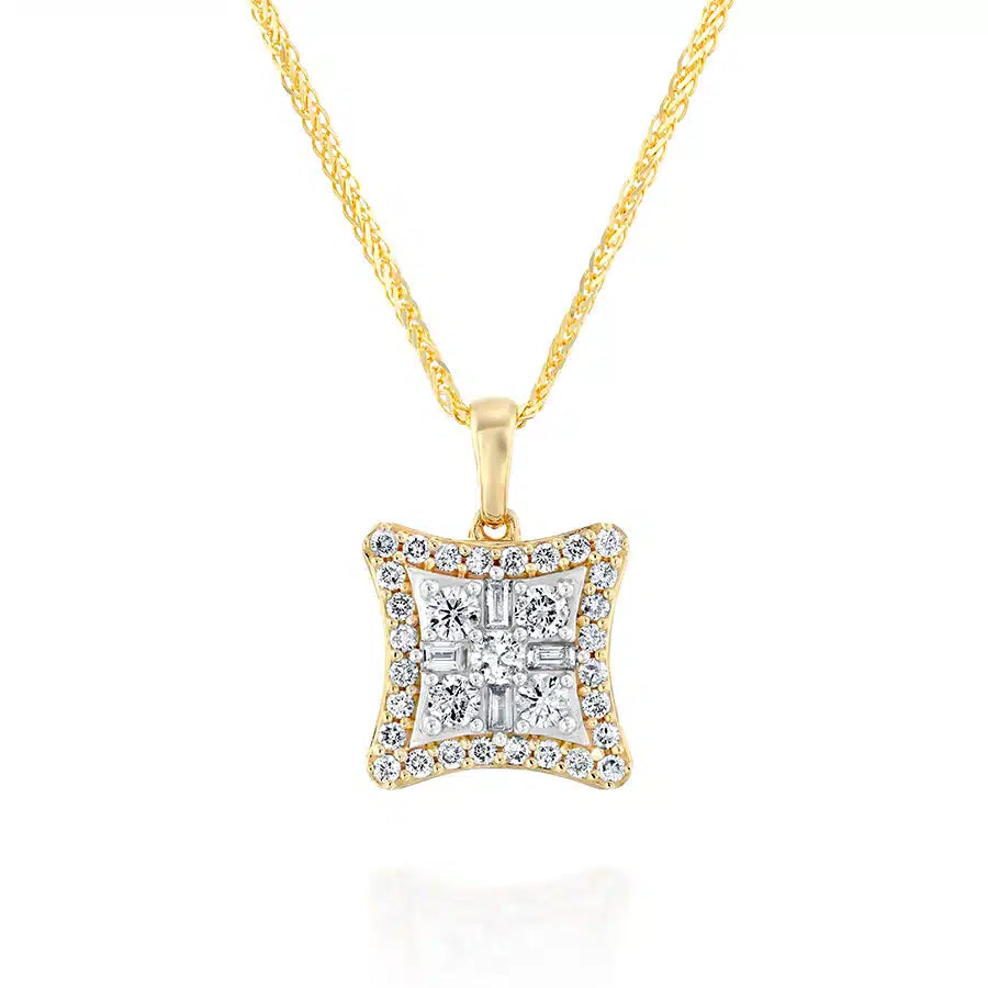 תליון יהלומים, 14K זהב, משובץ יהלומים במשקל כולל 0.50 קרט בצבע F נקיון SI, במשקל 1.80 גרם, המחיר אינו כולל שרשרת