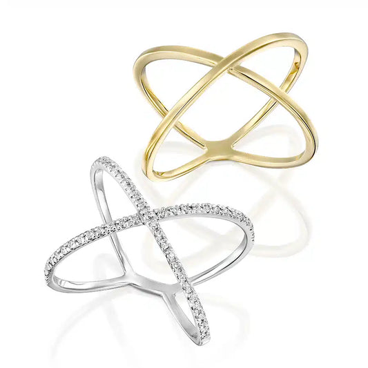 טבעת יהלומים בצורת "X",זהב 14K,משובצת 0.26 קראט יהלומים,דגם RD2936